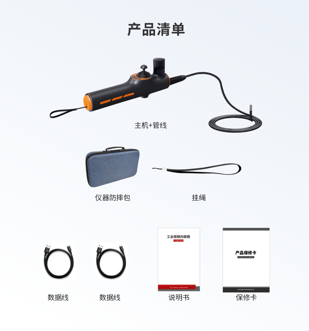 優(yōu)勢特點:USB接口直連電腦(工控機),0.95-8mm管徑可選、360°全方位擺頭、18650電池、配備Type-C充電口充電